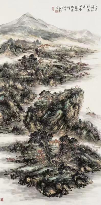 靳文艺,祖籍山西,生于内蒙古,定居北京,中国美术家协会会员,国家一级美术师,于1982年历时一年三个月,徒步单人沿黄河源头到入海口写生。先后毕业于内蒙师范大学艺术系,南京艺术学院国画系,中国国家画院。现为中国宋庄国画院执行院长,荣宝斋画院,清华美院中国画高研班导师,中国教育电视台CETV4《名家讲堂》山水画主讲,《丹青》杂志总编。